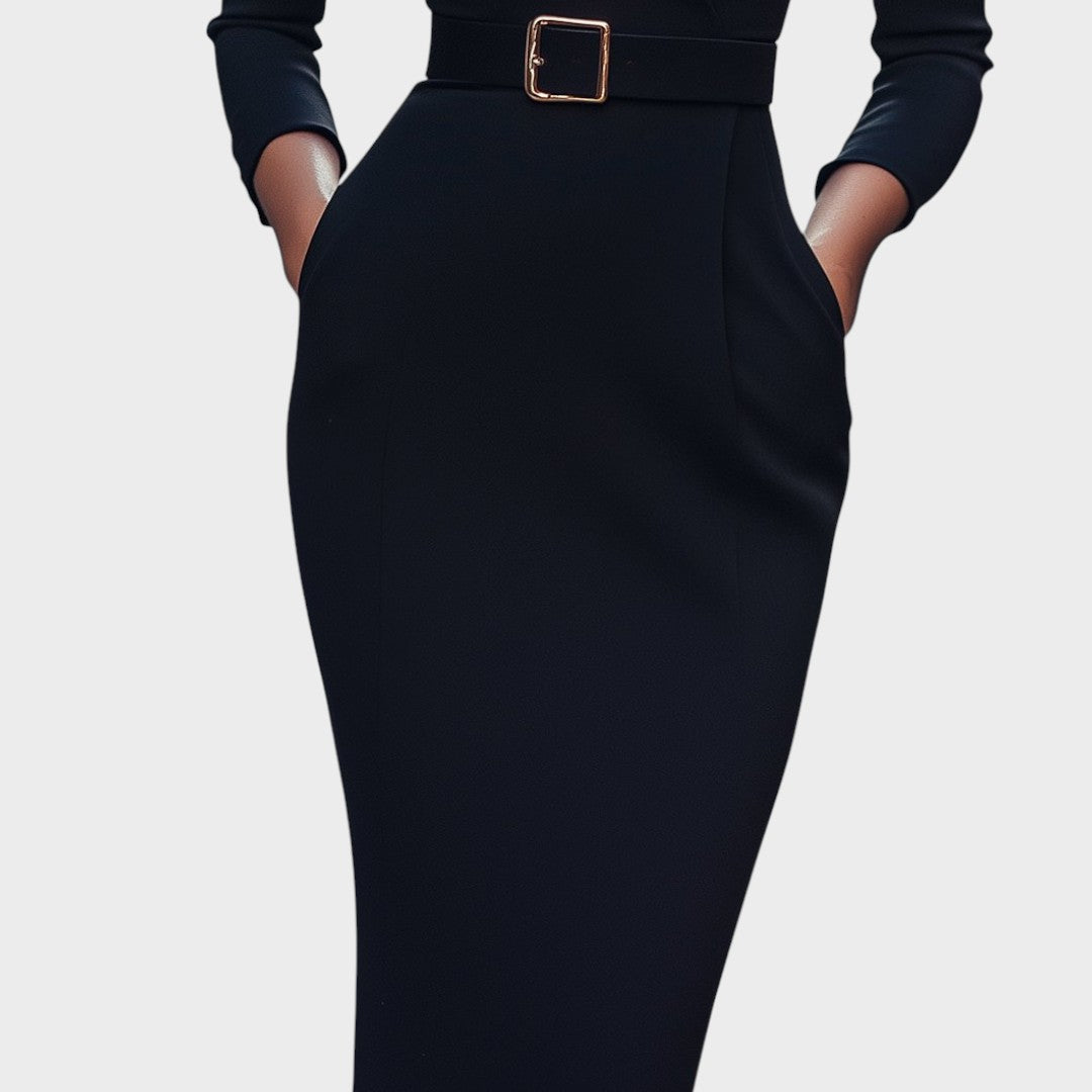 „Power Silhouette“ – juosmenį formuojanti pieštuko suknelė su diržu