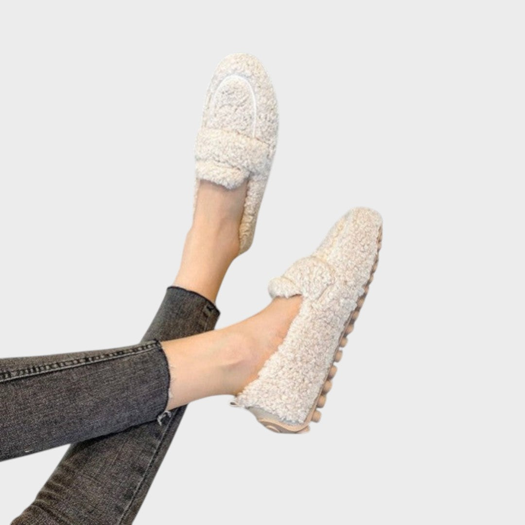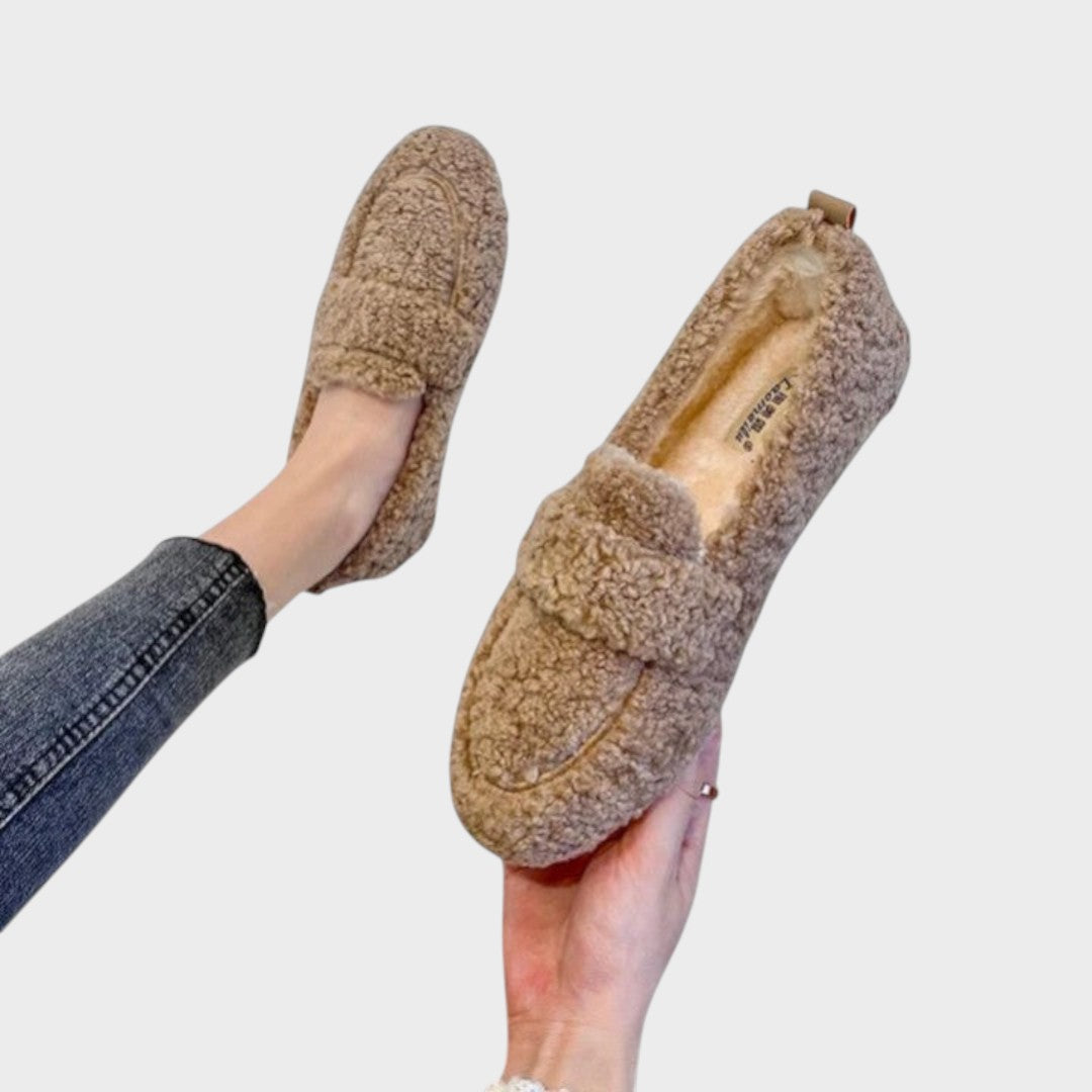 Plaušuotas, švelniai priglundantis viršus ir paminkštintas vidus suteikia namų jaukumą net mieste. Klasikinis loaferių siluetas su minimalistine juosta išlaiko tvarkingą, universalią išvaizdą, o neslystantis padas leidžia žingsniuoti užtikrintai visą dieną.