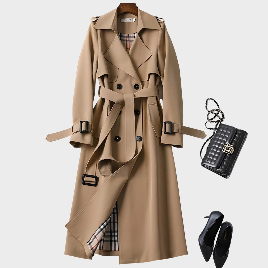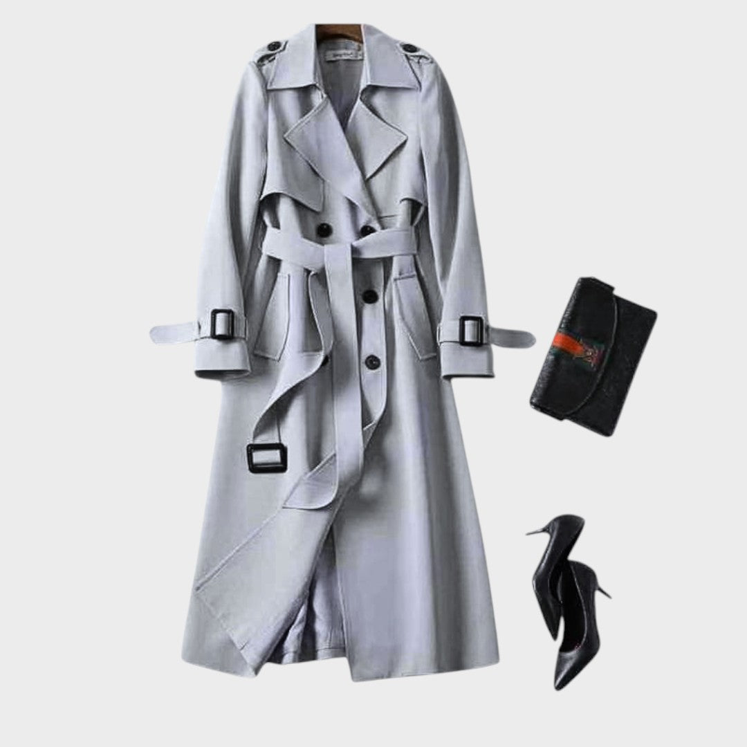Klasikinio kirpimo, ilgio iki blauzdų lietpaltis su plačiais atvartais ir formą pabrėžiančiu diržu. Priekyje – dviejų eilių sagos, pečiuose – epoletės, nugaroje – audros atvartas, o rankogaliai reguliuojami sagtelėmis. Viduje – tvarkingas languotas pamušalas, patogios kišenės ir nepriekaištingai krintantis, tankus audinys, kuris gražiai laiko formą.